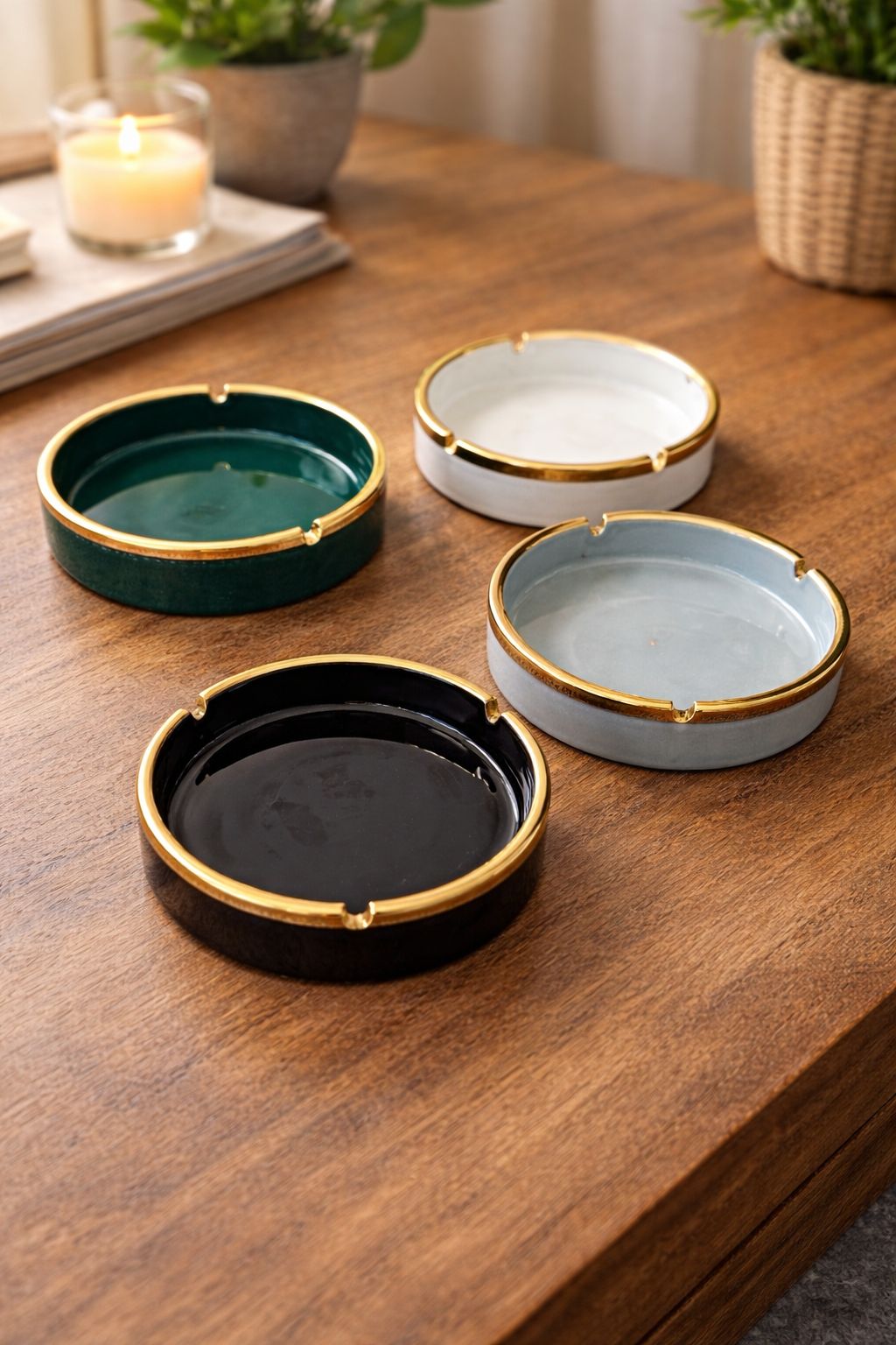 Minimal design, rich colors, and a touch of gold. Ceramic ash trays are perfect for homes, lounges, and gifting.