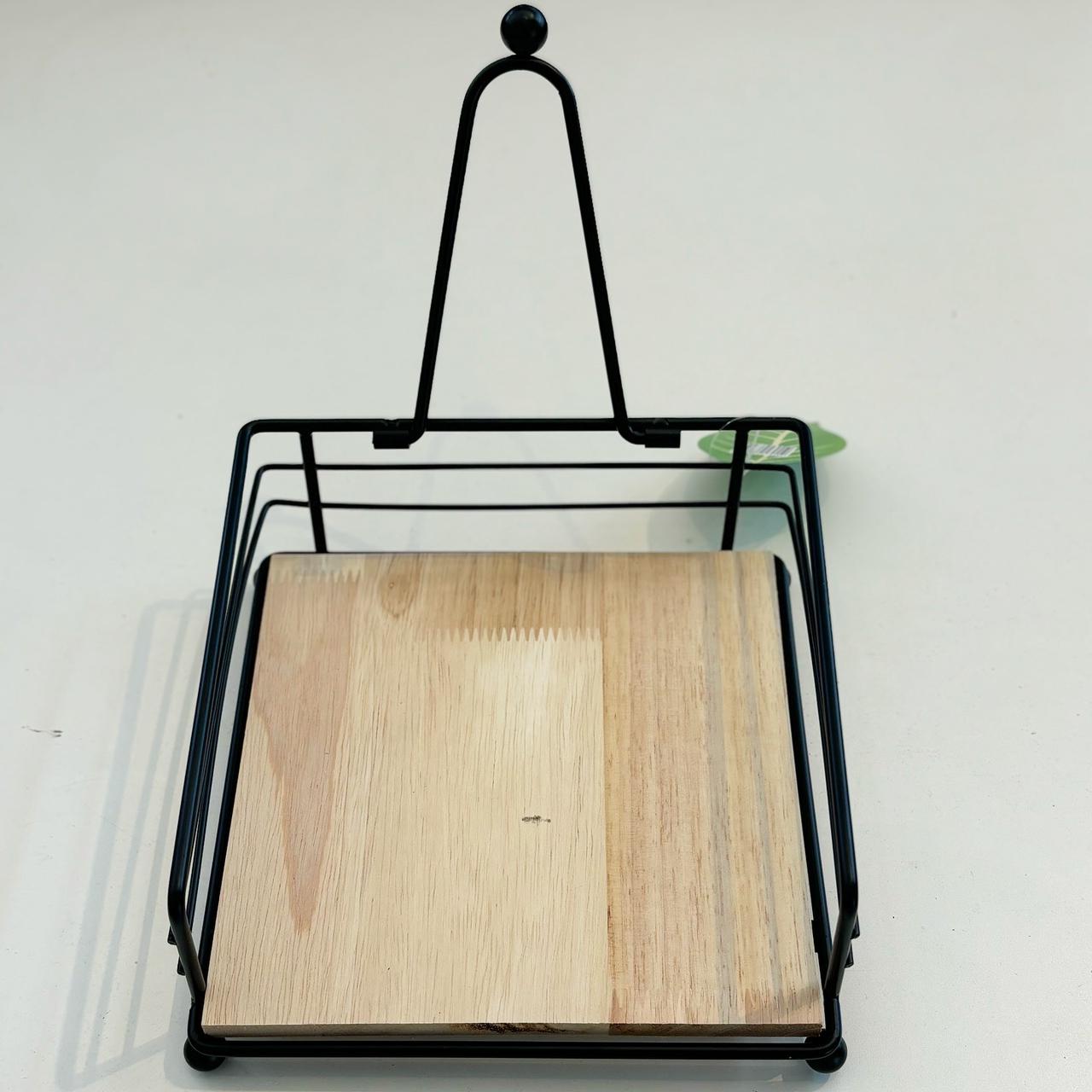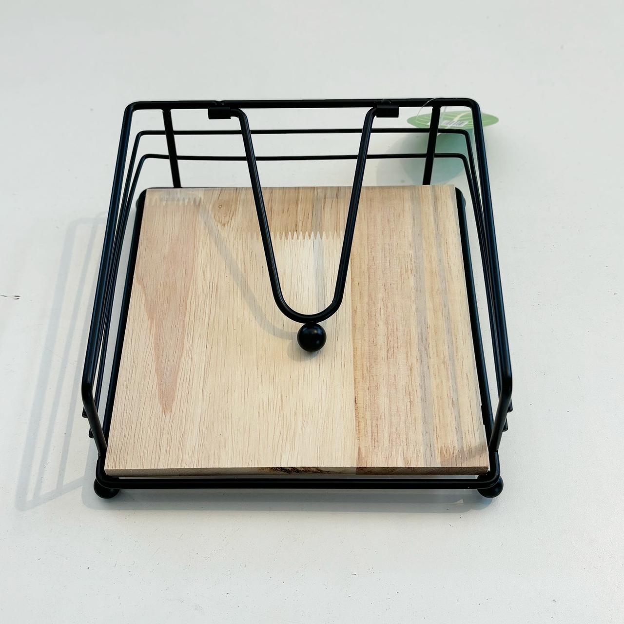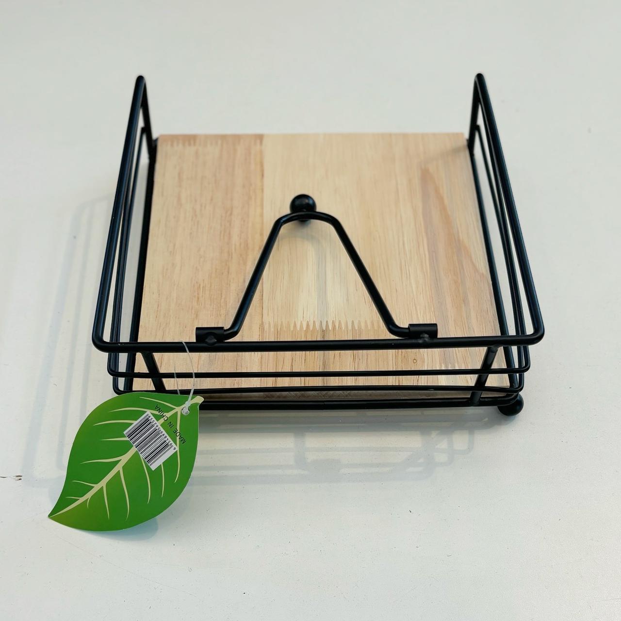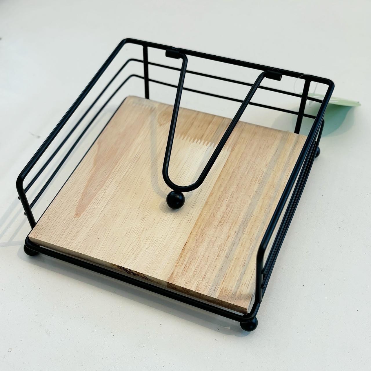 Keep your napkins neatly organized with this modern wooden & metal napkin holder — the perfect blend of style and functionality.